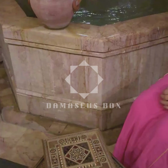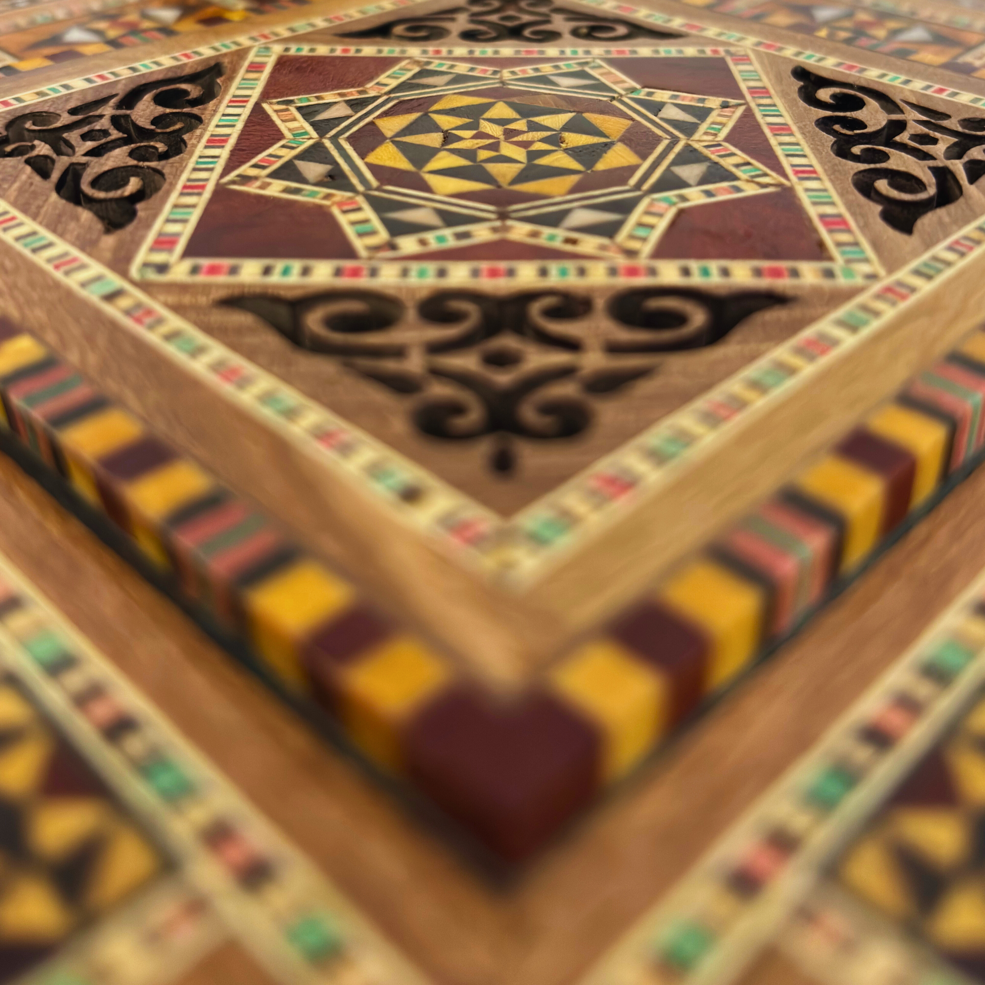 Gefertigt aus feinem Buche, Zitrone, Nussbaum, Eukalyptus und Rosenholz in der historischen Altstadt von Damaskus, zeigt diese quadratische Mosaikschatulle exquisite Handwerkskunst und traditionelle Kunstfertigkeit. Ihr elegantes Mosaikdesign bietet eine anspruchsvolle Möglichkeit, Schmuck, kostbare Kleinigkeiten, Zigarren oder Andenken aufzubewahren – eine perfekte Verbindung von Schönheit und Funktionalität.