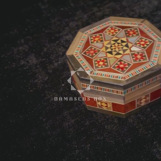 mini octagonale mozaïekdoos, handgemaakte Damascene doos, parelmoeren sieradendoos, Midden-Oosterse bewaardoos, walnoot houten doos, uniek cadeau idee, ambachtelijke houten doos, culturele mozaïekkunst, Damascus doos, Syrische doos, cadeau voor haar, cadeau voor hem